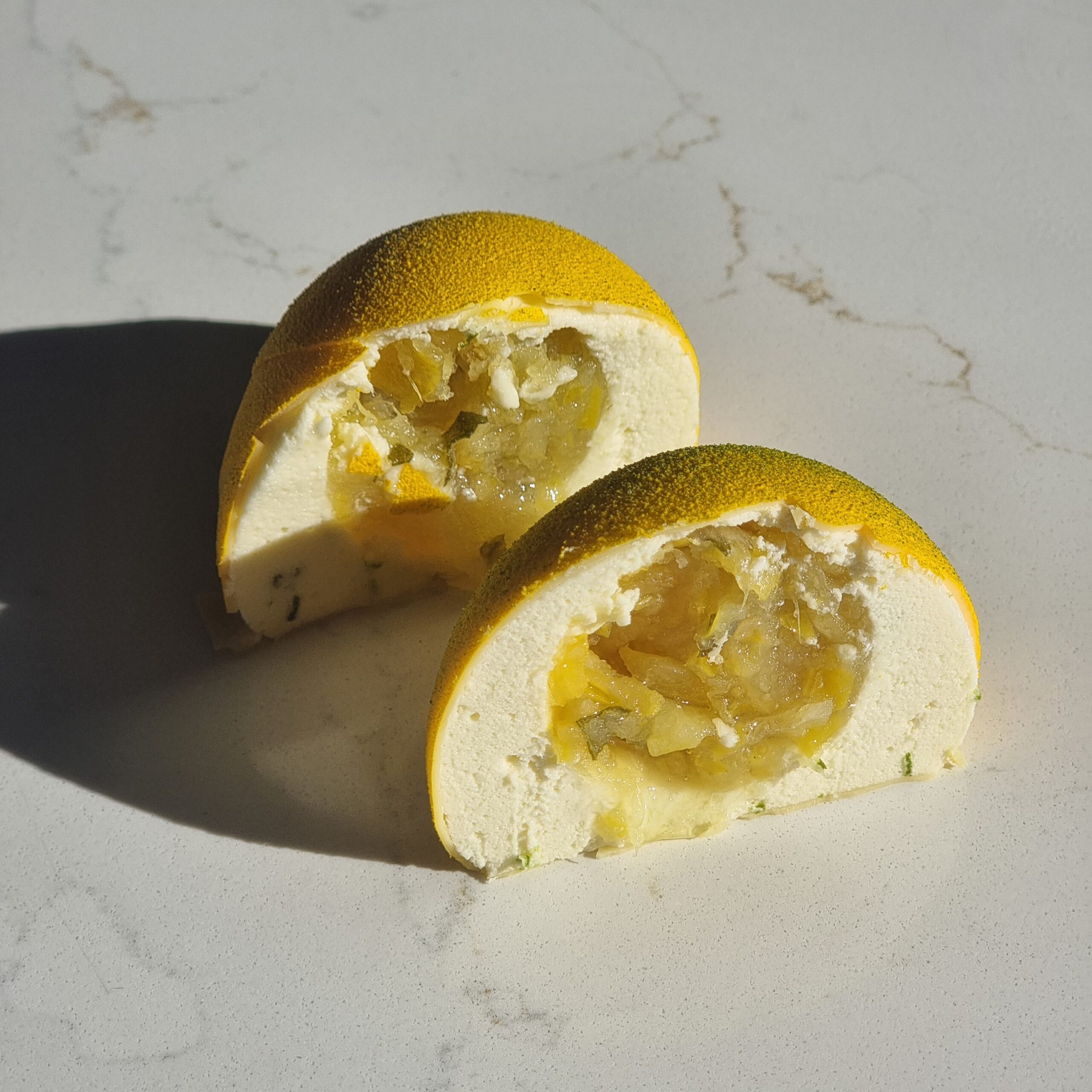 Au programme : gel fruits, mousse, ganache, coque en chocolat et décors…tout ce qu’il faut pour sublimer chaque fruits.
