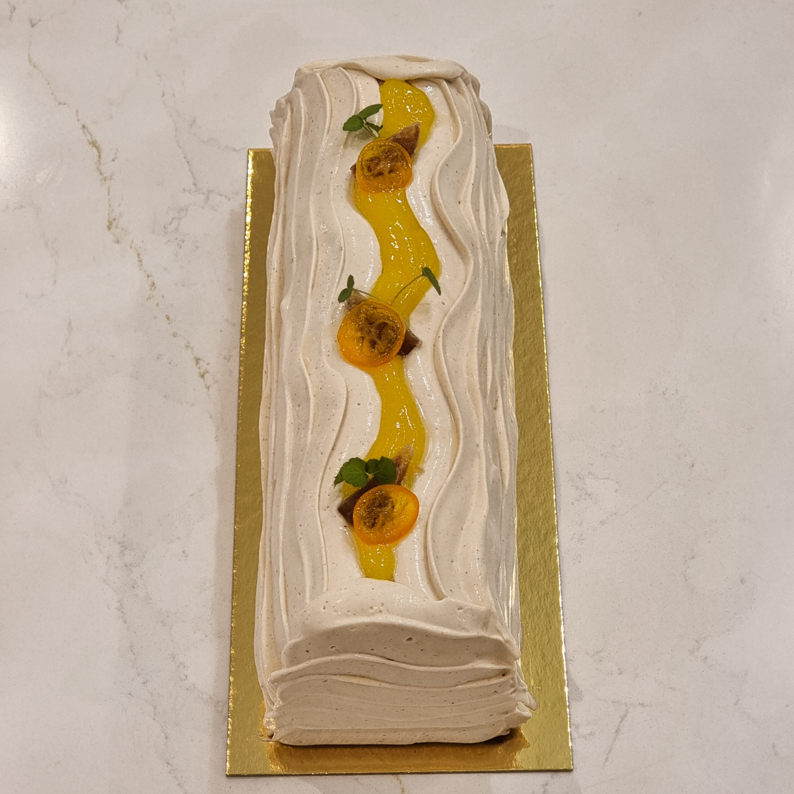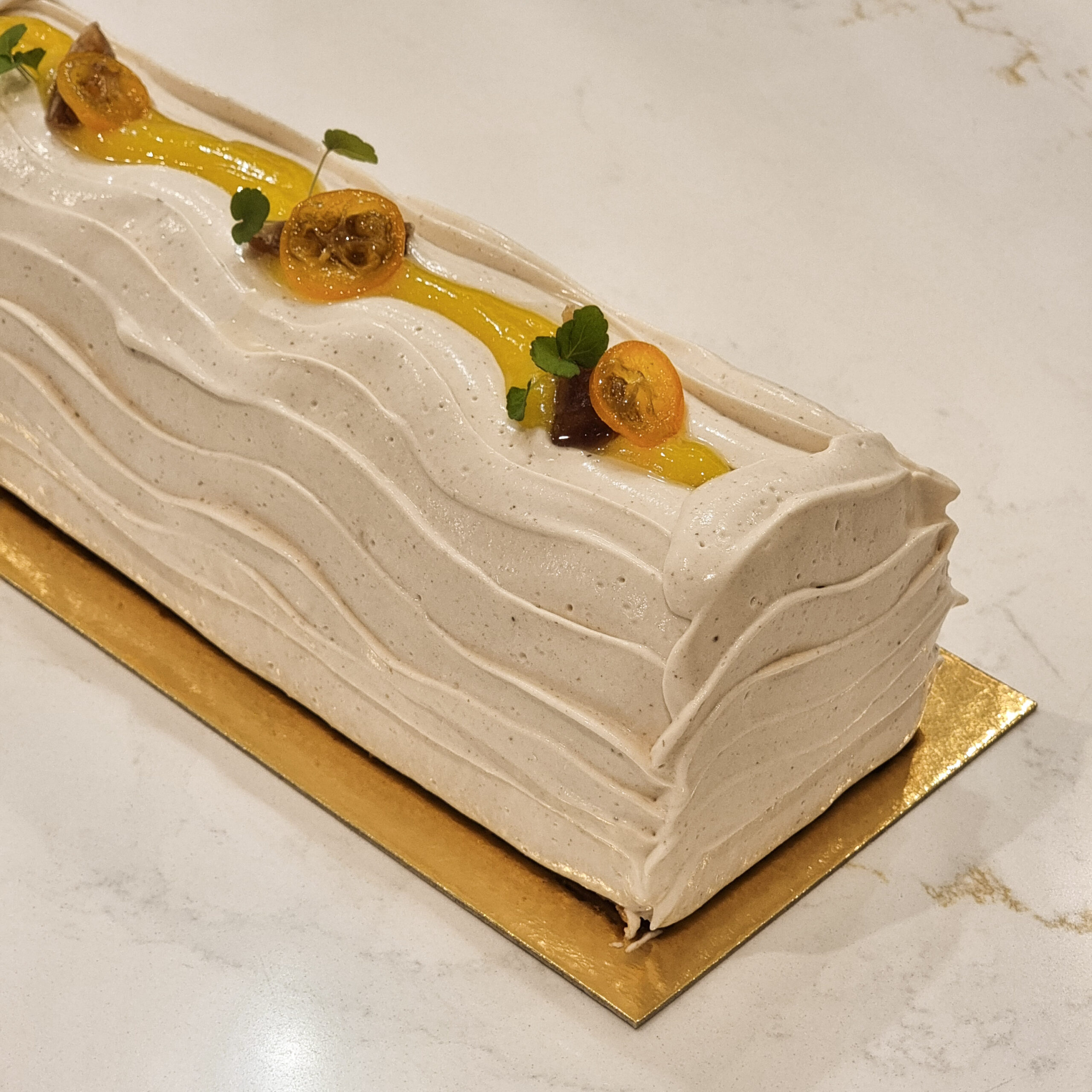 Une alliance surprenante entre la rondeur crémeuse du marron et le peps acidulé du kalamansi, pour une finale fraîche et parfumée.